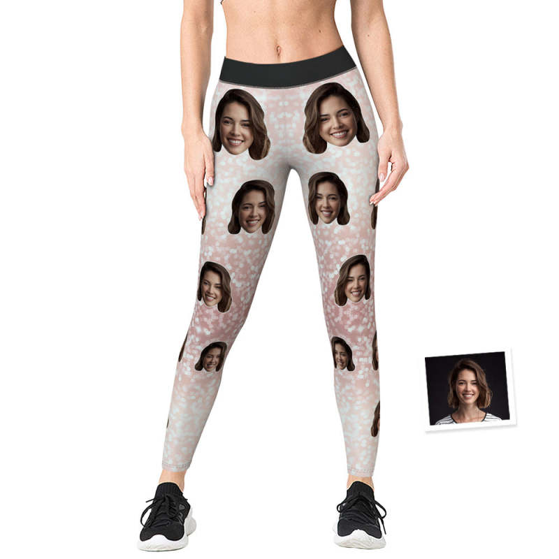 Custom Face Low Rise Yoga Leggings Photo Gym Pants - Shiny Pink