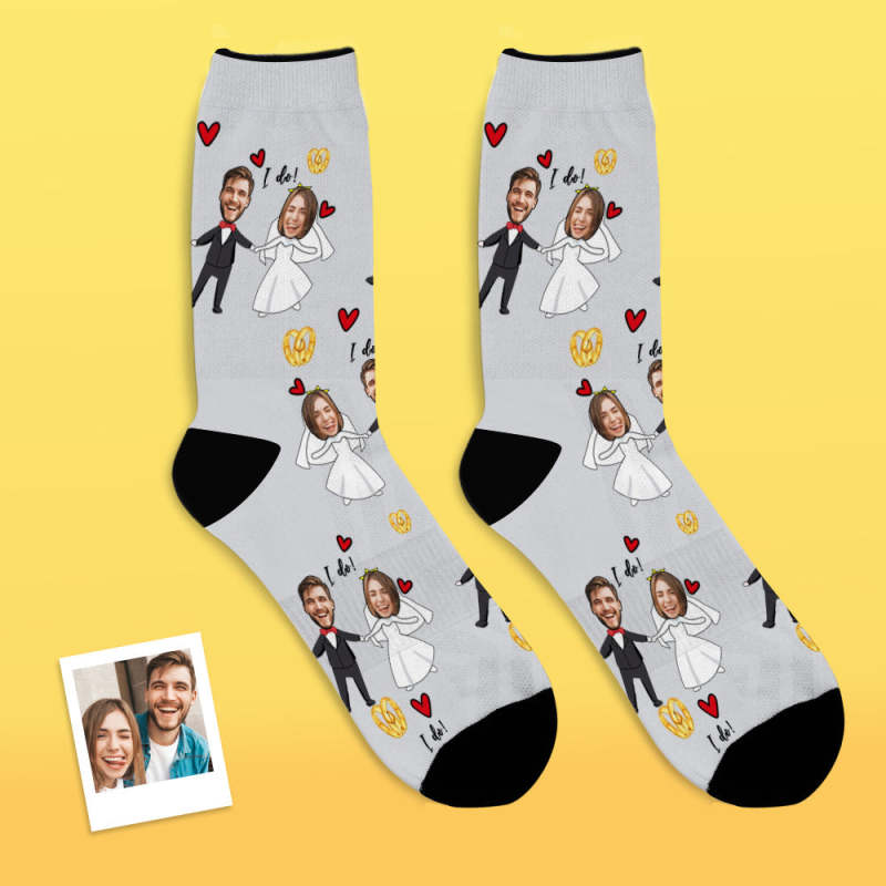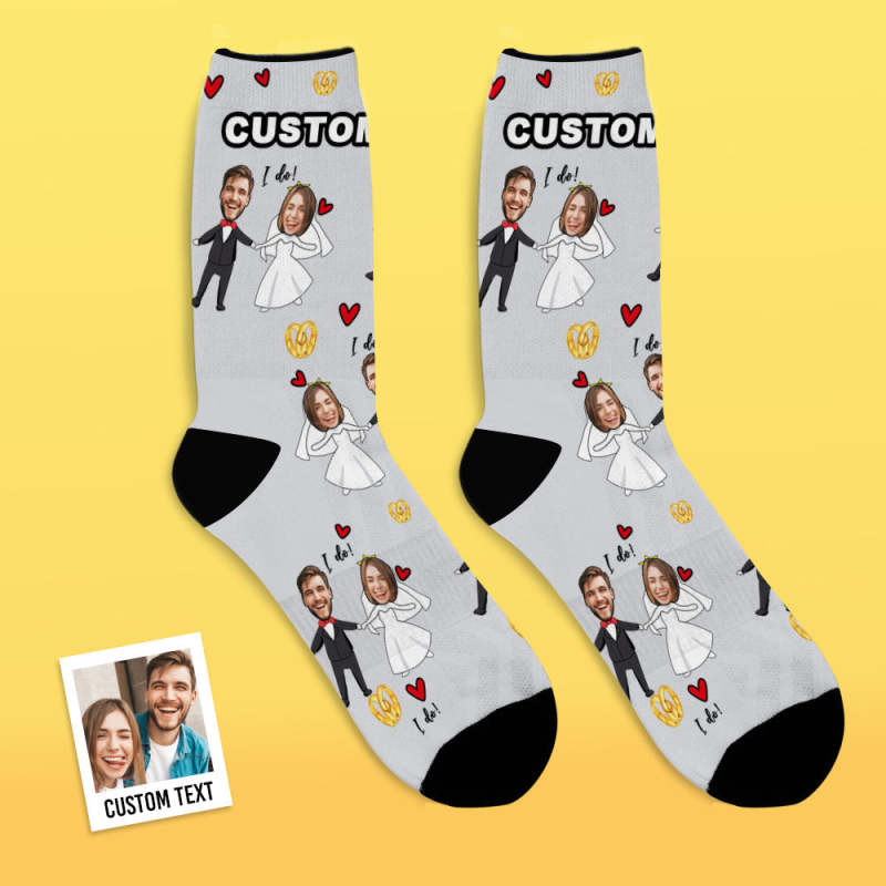 Custom Face Socks Add Pictures and Name Breathable Soft Socks Wedding Dress Socks