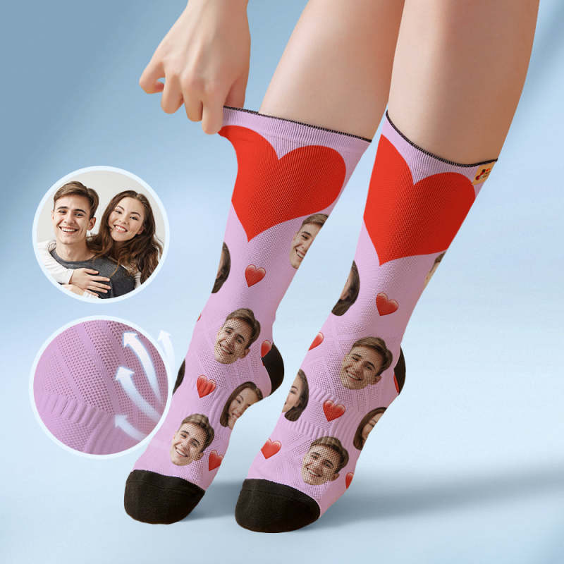 Custom Face Socks Breathable Soft Socks Add Pictures and Name - Heart -Purple
