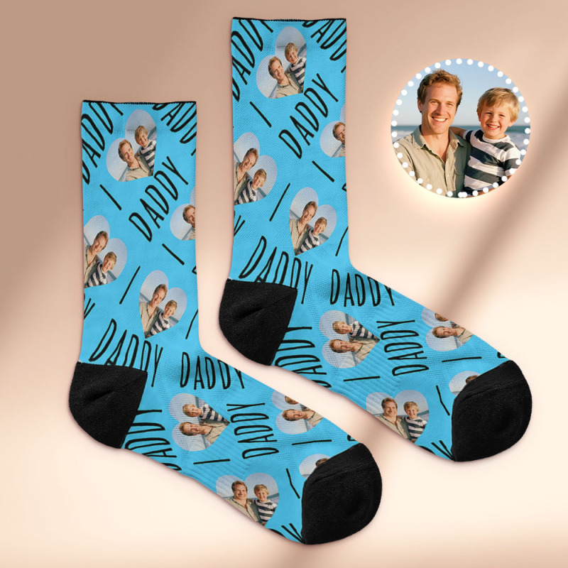 Custom Face Socks I Love Daddy Face Socks Photo Print Socks Colorful Dad Socks Personalized Fathers Day Gift