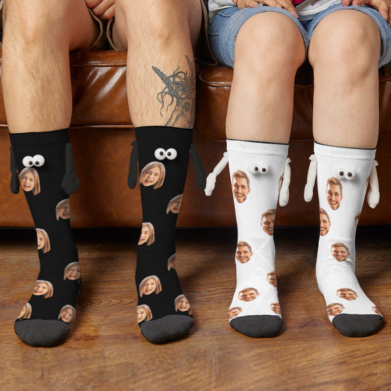 Custom Face Socks Magnetic Holding Hands Suction Funny Holding Hands Socks Lovely Socks for Couple Halloween Gift