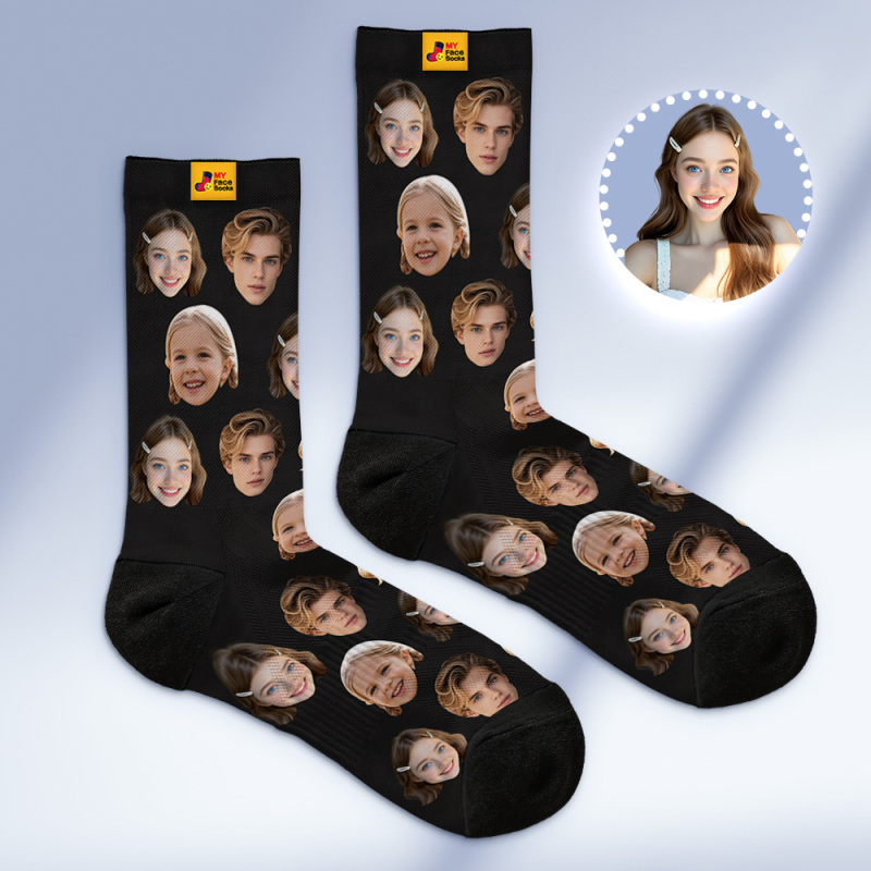 Custom Face Socks Personalized Socks with Faces Photo Gray Funny Gift Photo Family Socks