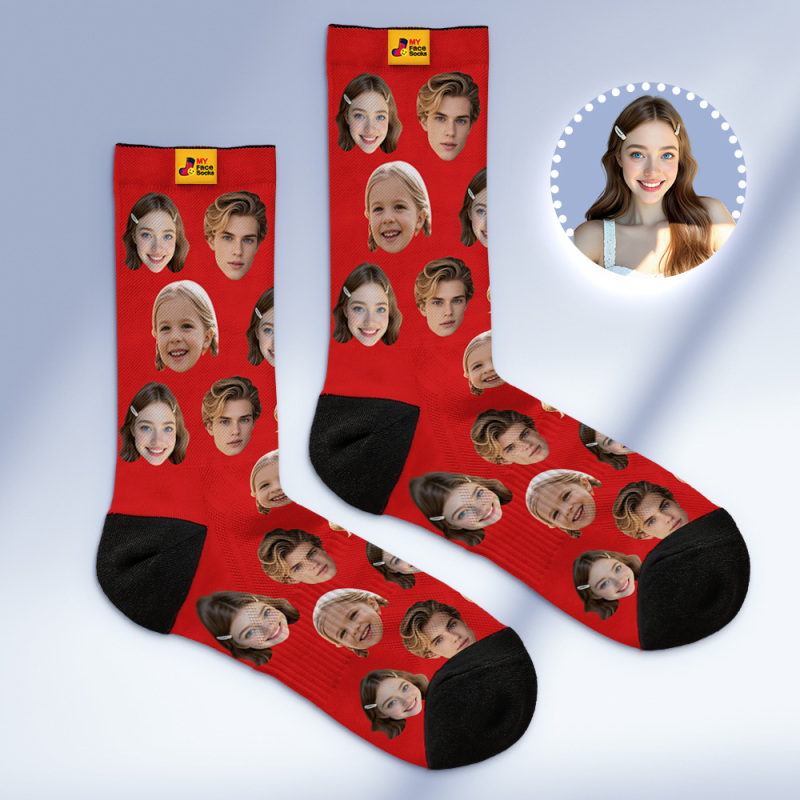 Custom Face Socks Personalized Socks with Faces Photo Pink Funny Gift Photo Family Socks
