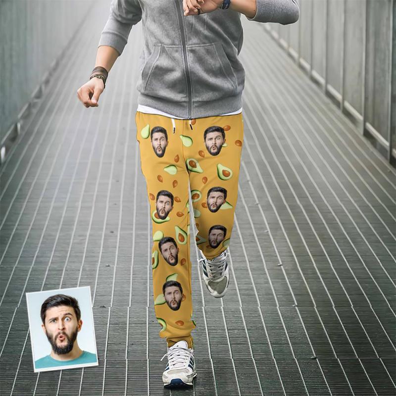 Custom Face Sweatpants Personalized Unisex Joggers Avocado Design