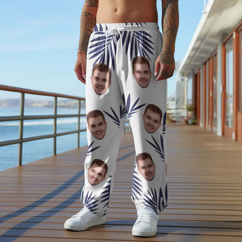 Custom Face Sweatpants Palm Leaf Print Multicolor Personalized Casual Golf Pants for Him