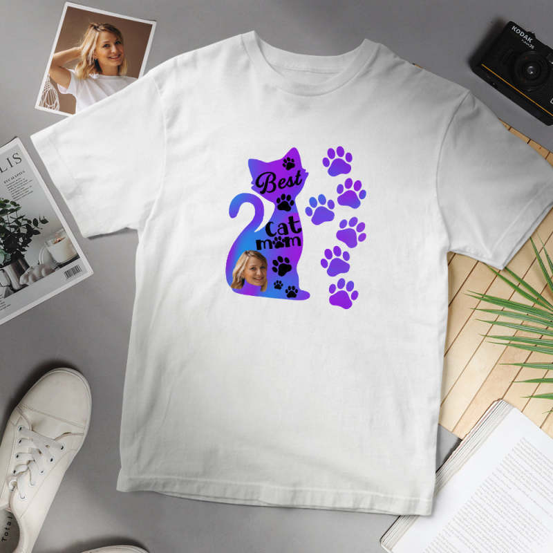 Custom Face T-shirt Personalized Best Cat Mom T-shirt