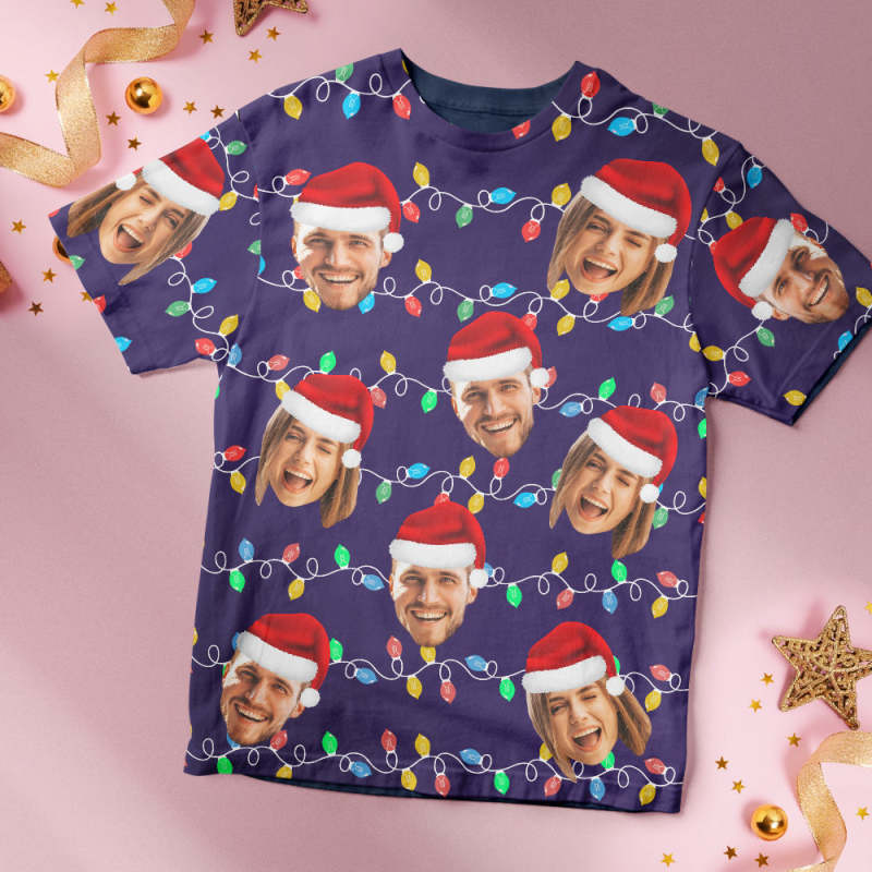 Custom Face T-shirt Personalized Personalized Photo Xmas Leds Unisex T-shirts Merry Christmas