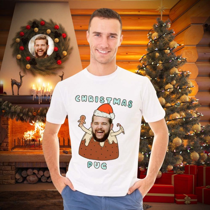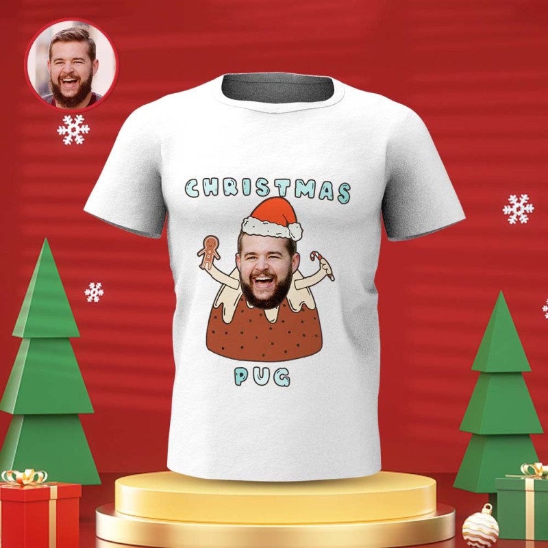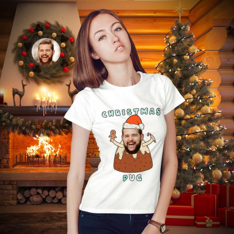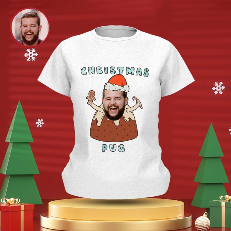 Custom Face T-shirt Personalised Photo Funny T-shirt Christmas Gift For Women And Men - Pug