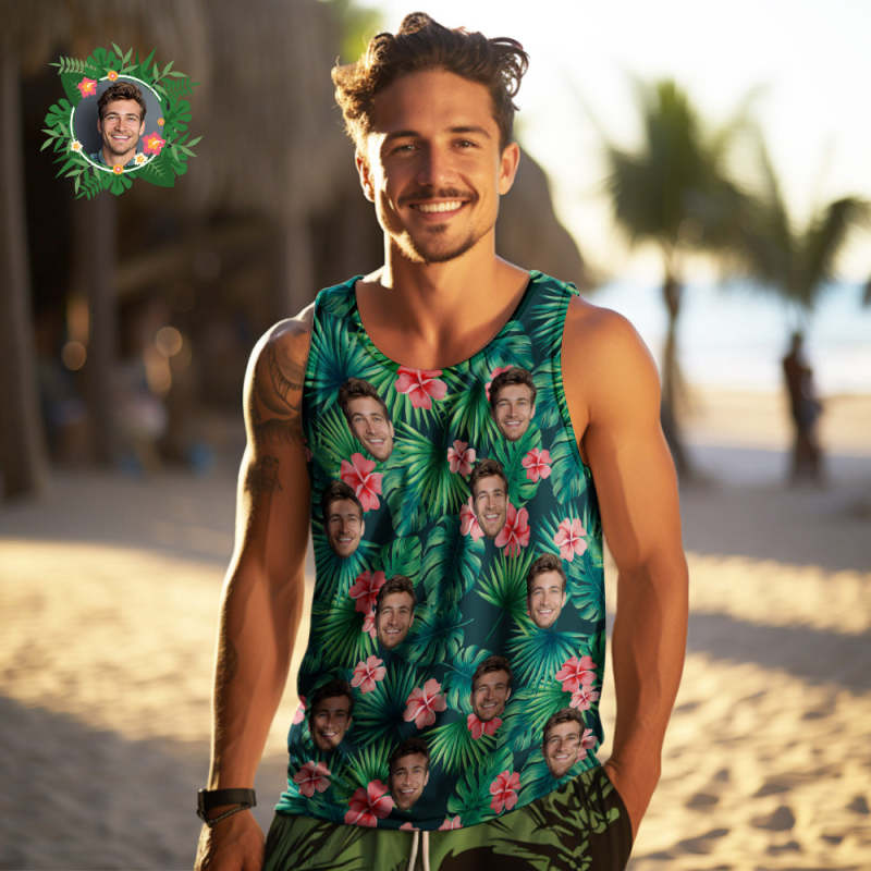 Custom Face Tank Tops Men's Sleeveless Shirt Red Flowers