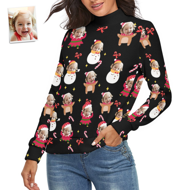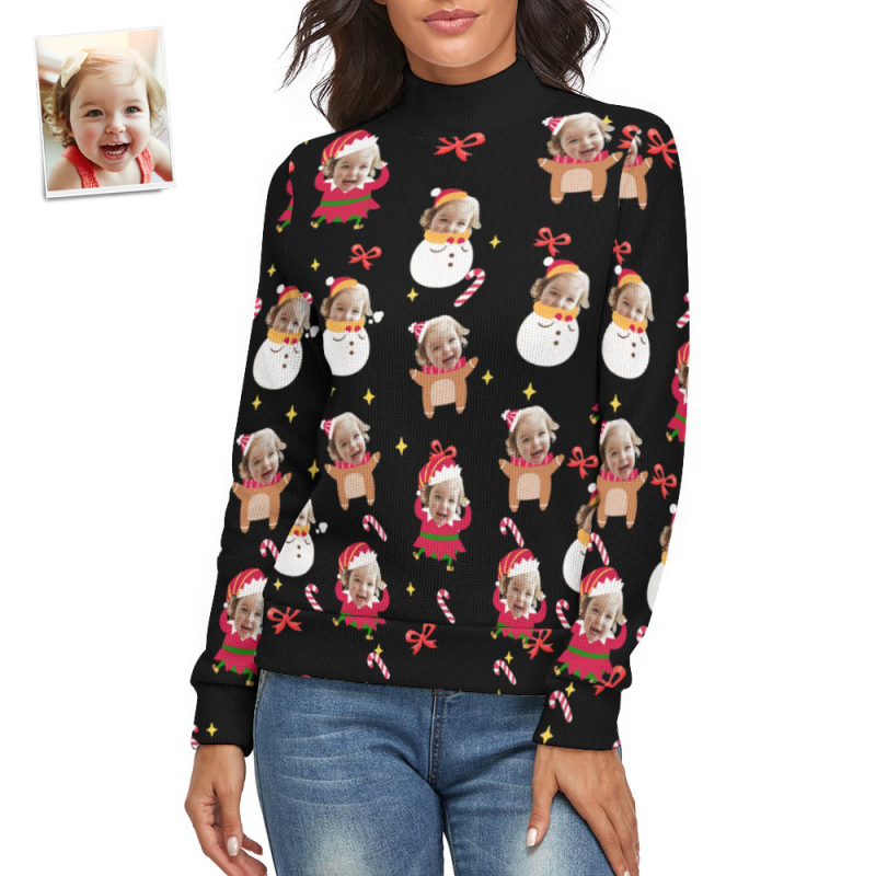 Custom Face Women Christmas Sweater Lively And lovely Spandex Comfortable