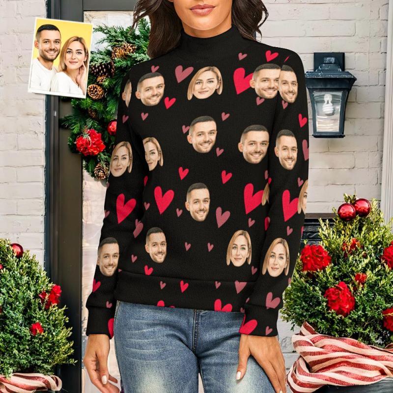 Custom Face Women Sweater With Little Heart Couple Theme Spandex Comfortable
