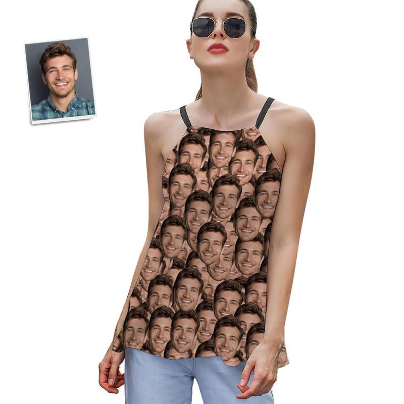 Custom Face Women's Strappy Camisoles Summer Sexy Loose Cute Tanks Tops - Face Mash