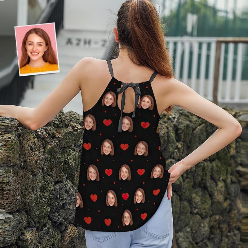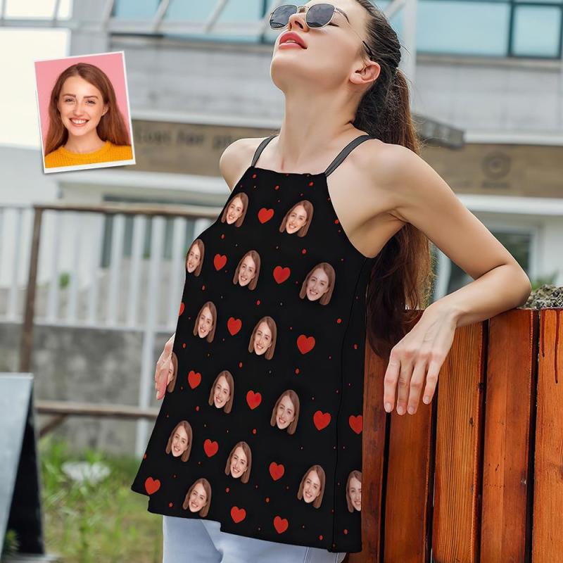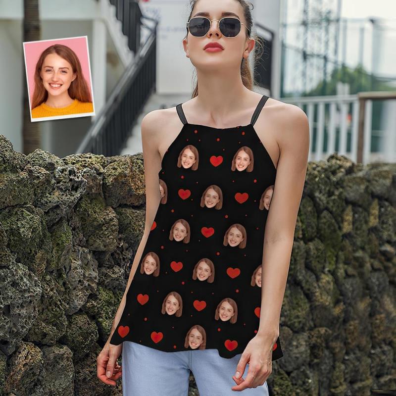 Custom Face Women's Strappy Camisoles Summer Sexy Loose Cute Tanks Tops - Heart