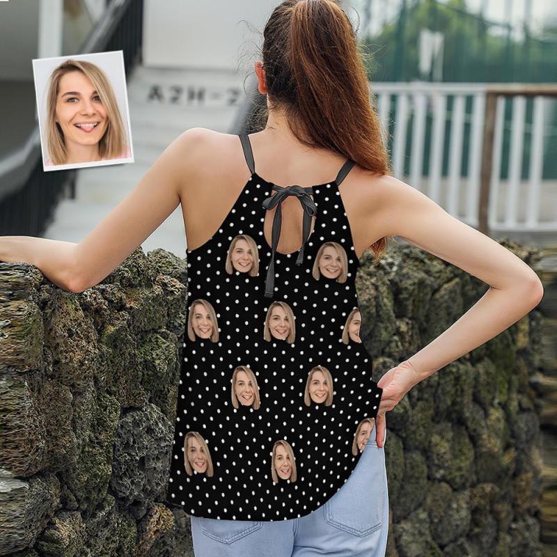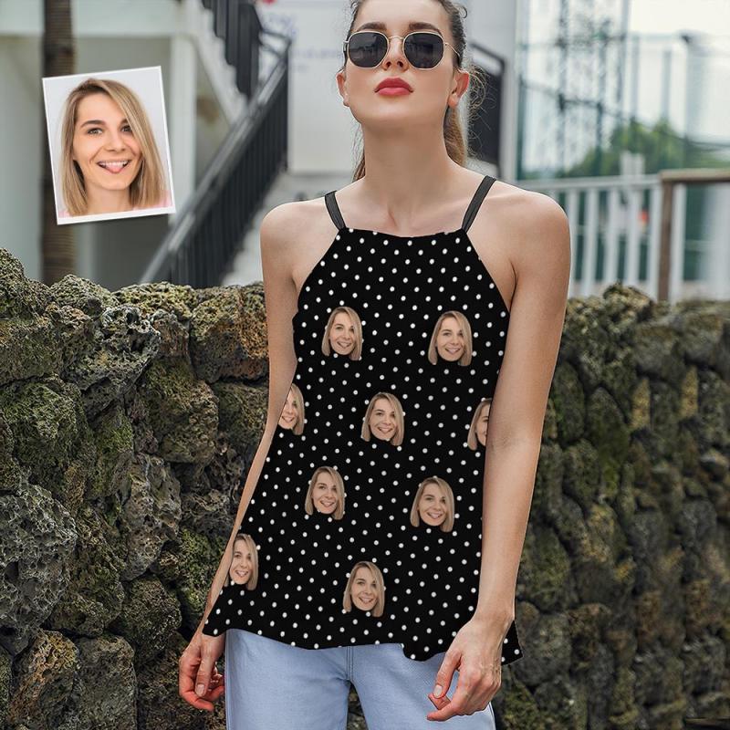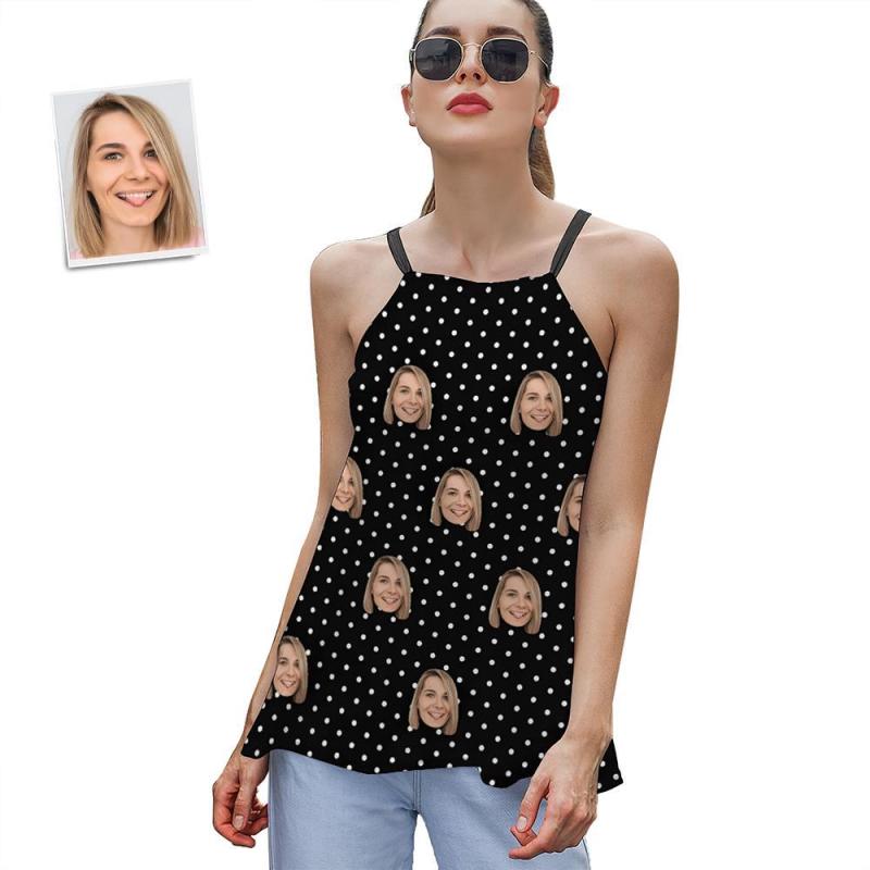 Custom Face Women's Strappy Camisoles Summer Sexy Loose Cute Tanks Tops - Polka