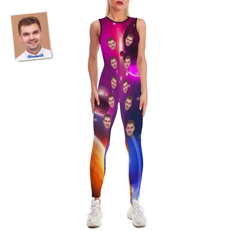 Custom Face Women's Yoga Jumpsuit Stretch Yoga Gym Fitness Dancing Costume - Galaxy