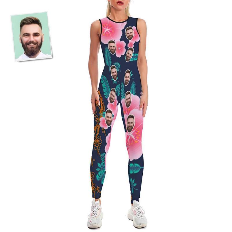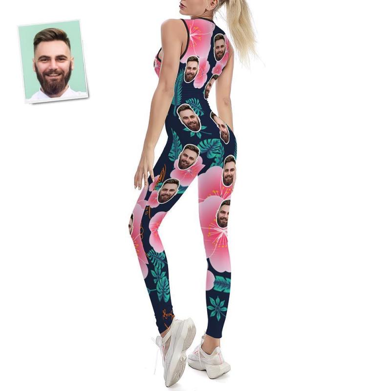 Custom Face Women's Yoga Jumpsuit Stretch Yoga Gym Fitness Dancing Costume - Hawaiian Flower