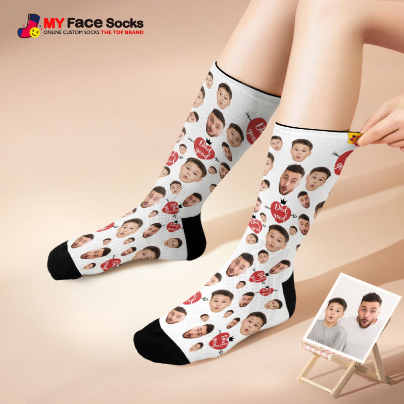 Custom Full Face Photo Print Socks Love Dad Good Color Crown Dad Socks Personalized Custom Design Best Fathers Day Gift