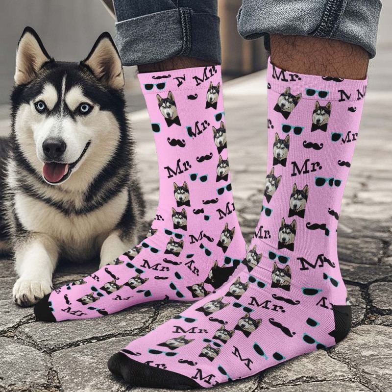 Custom Full Face Socks Mr Cute Black Socks Personalized Photo Custom Design Best Gift Idea