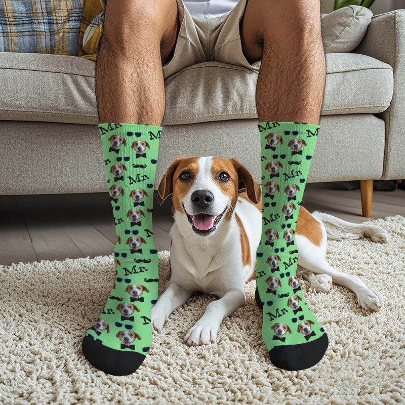 Custom Full Face Socks Mr Cute White Socks Personalized Photo Custom Design Best Gift Idea