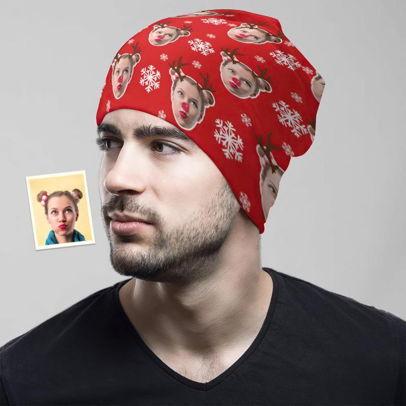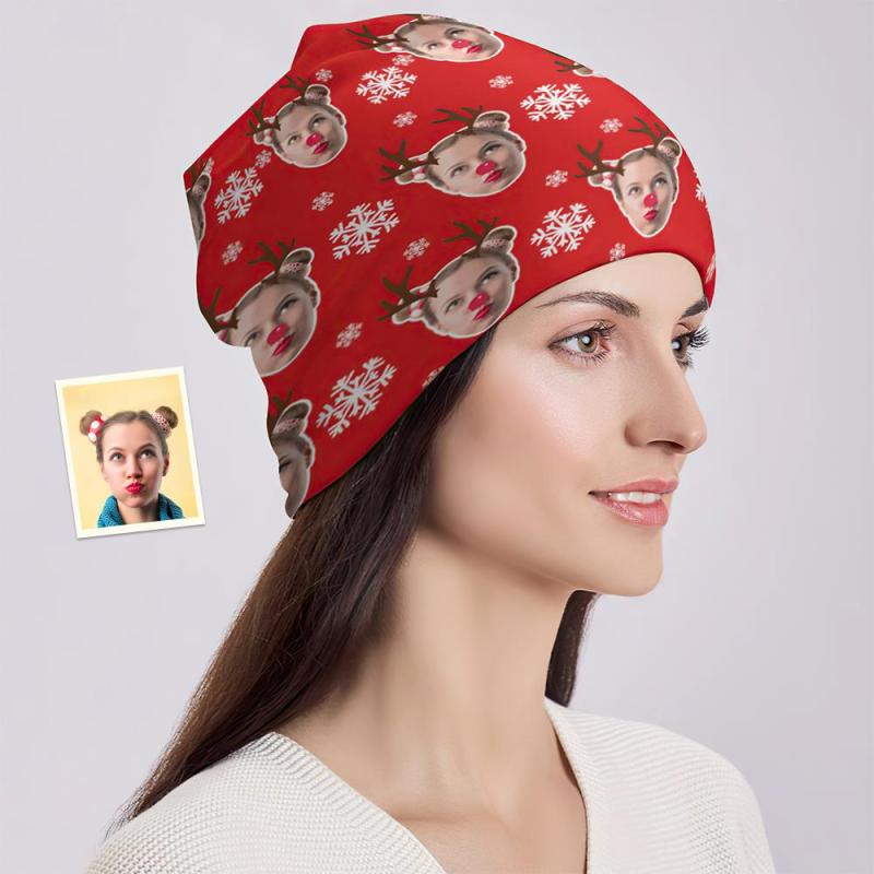 Custom Full Print Pullover Cap Personalized Photo Beanie Hats Christmas Gift for Him - Elk