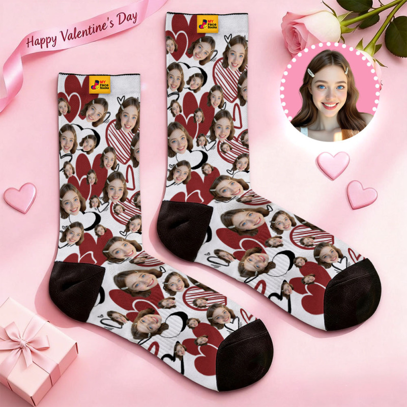 Custom Heart Face Socks Personalized Photo Valentine’s Day Couple Gift