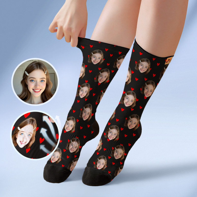 Custom Heart Face Socks Personalized Red Socks with Faces Photo Funny Gift Photo Couple Family Socks