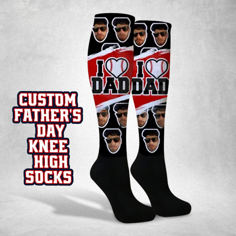 Custom I Heart Dad Knee High Socks Personalized Compression Father's Day Tournament Sport Team Baseball Softball Soccer