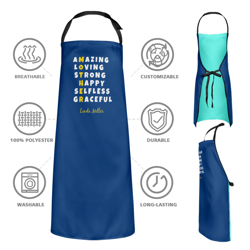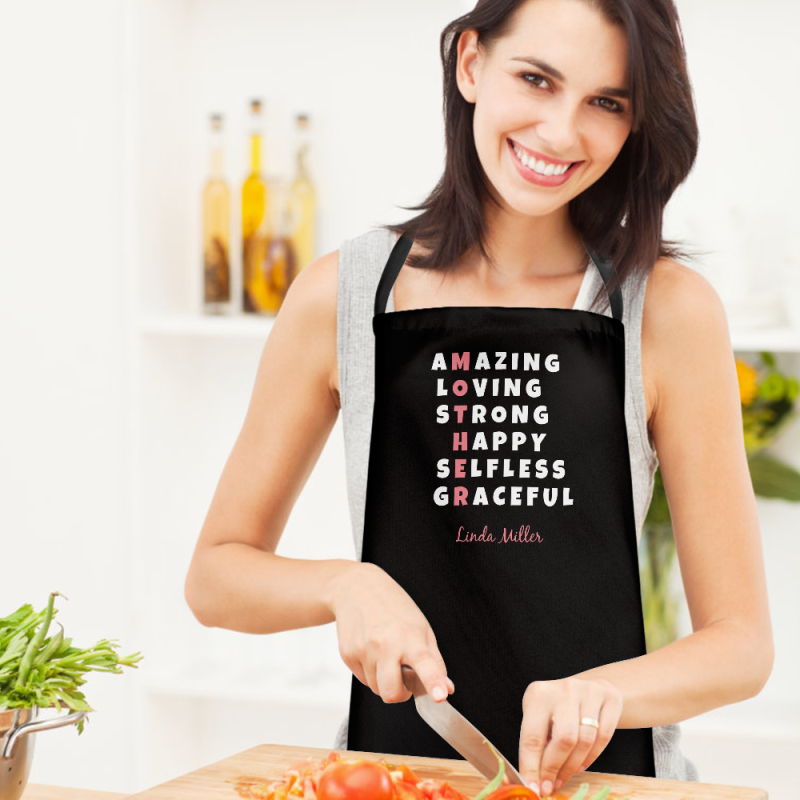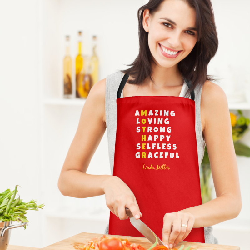Get cookin' and keep your clothes good lookin' wearing our custom apron around the kitchen.
