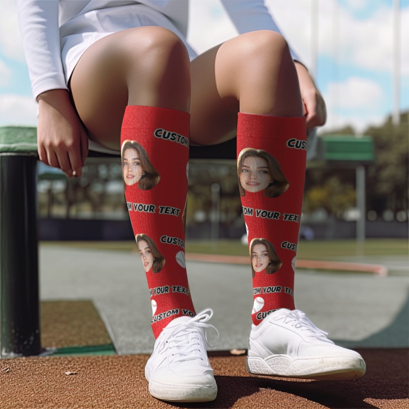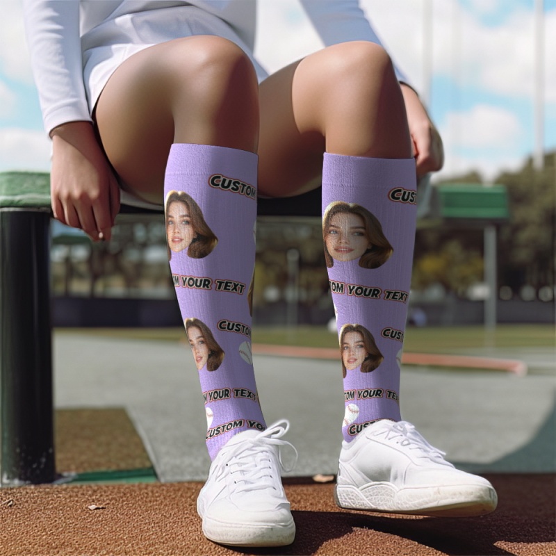 Custom Knee High SocksPhoto and Text Yellow Upgrade Custom Breathable Knee-high Compression Socks