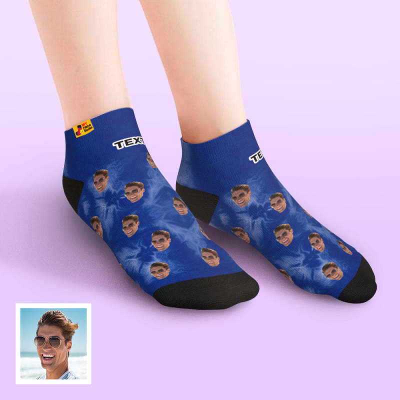 Custom Low cut Ankle Socks Personalised Face Socks Tie Dye Dark Blue