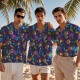 Custom Men Light Blue Leaves Hawaiian Shirts Face Shirt Beer Pattern Hawaiian Shirt Gift for Summer Vibe Holiday