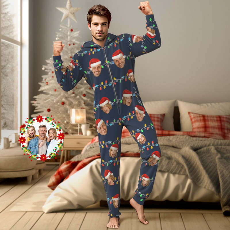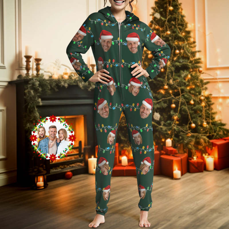 Custom Onesies Photo Xmas Leds Pajamas One-Piece Sleepwear Family Pyjamas Christmas Gift