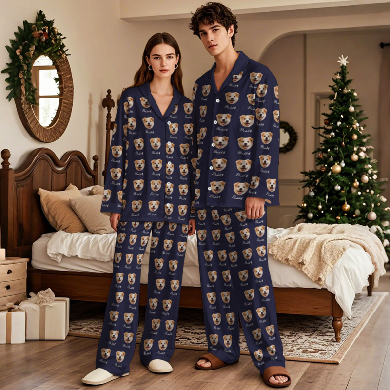 Custom Pet Face Christmas Red Pajamas Personalized Dog Cat Long Sleeve PJs with Name Perfect Holiday Gift for Pet Lovers