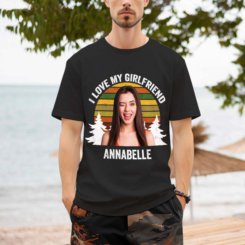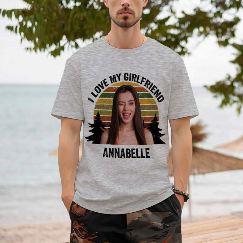 Custom Photo and Text Retro Sunset T-shirt Personalised Vintage Tee