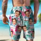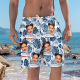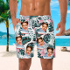 Custom Photo Cruise Ship Beach Shorts Gift For Traveling Lovers Personalized Blue Leaves Face Beach Shorts