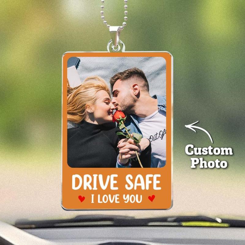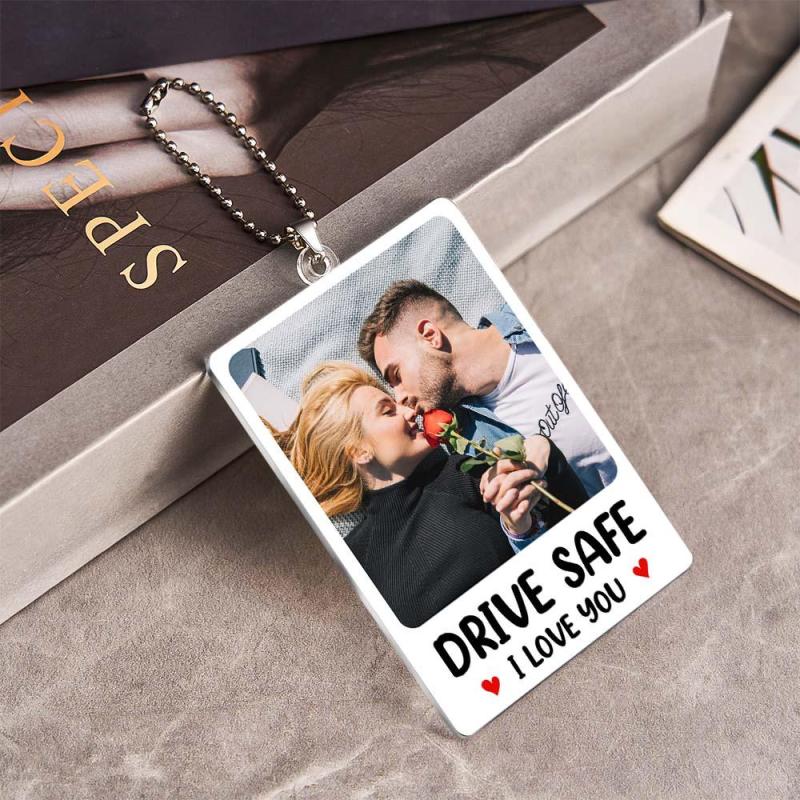 Custom Photo Rear View Drive Safe, I Love You - Personalized Photo Rear View Mirror Accessory