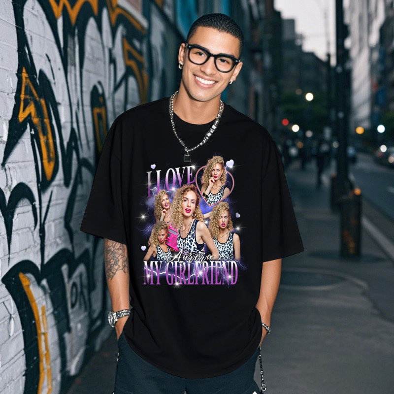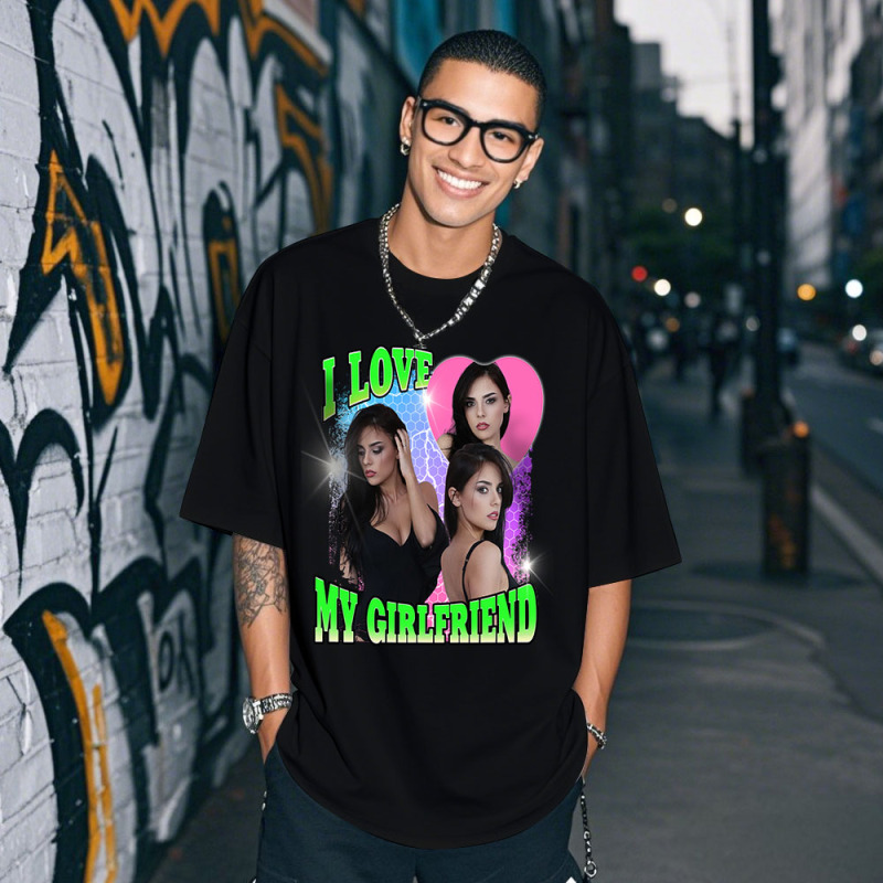 Custom Photo Tee Personalized Photo T Shirt I LOVE MY GIRLFRIEND Heart Couple Anniversary Valentine Gift