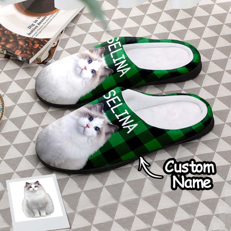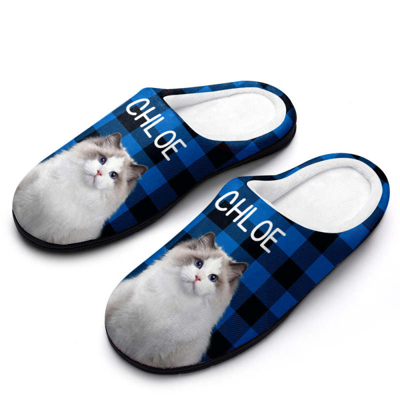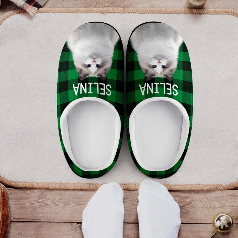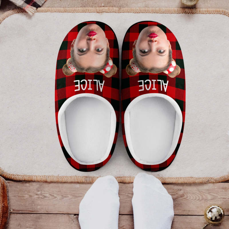 Custom Photo Women's and Men's Slippers Personalized Casual House Cotton Slippers Christmas Gift Pet Dog Red