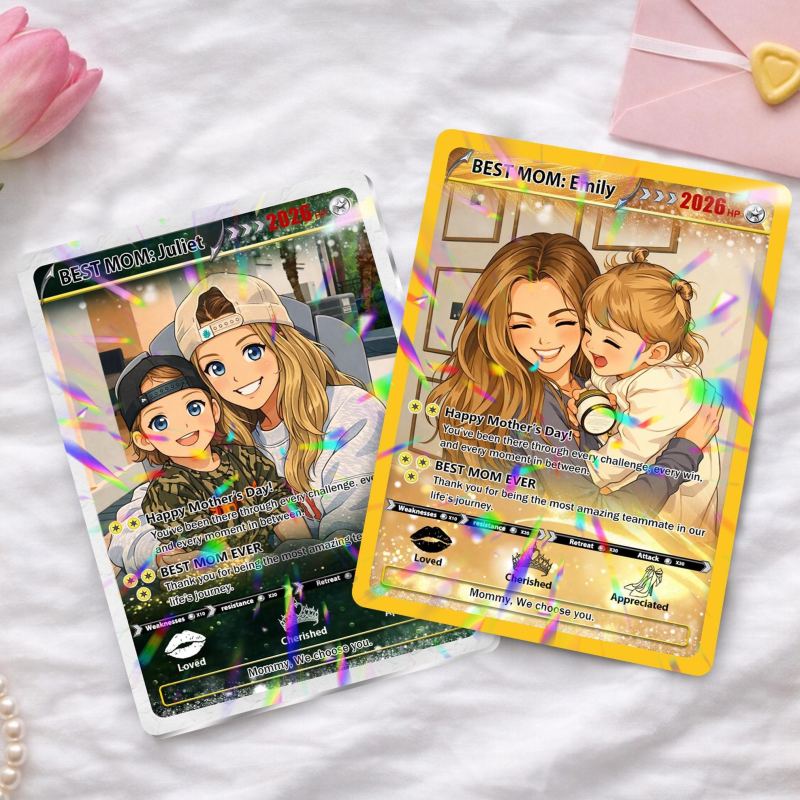 Celebrate Mom with a truly special keepsake by turning her photo into an adorable game card. Designed to be playful, personal, and full of heart, this custom card captures her unique charm in a fun anime style. This one-of-a-kind card is sure to become a cherished memory she’ll love showing off.