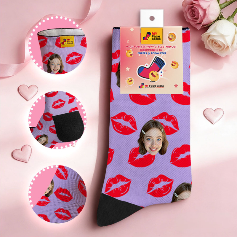 Custom Red Heart Face Socks Personalized Valentine Day Socks with Photo Cute Heart Pattern Couple Gift