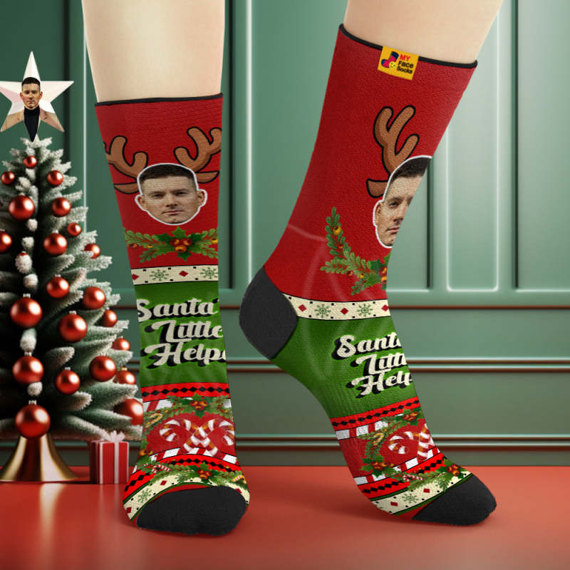 Custom Santas Style Breathable Face Socks Personalised Soft Socks Gifts Christmas Day
