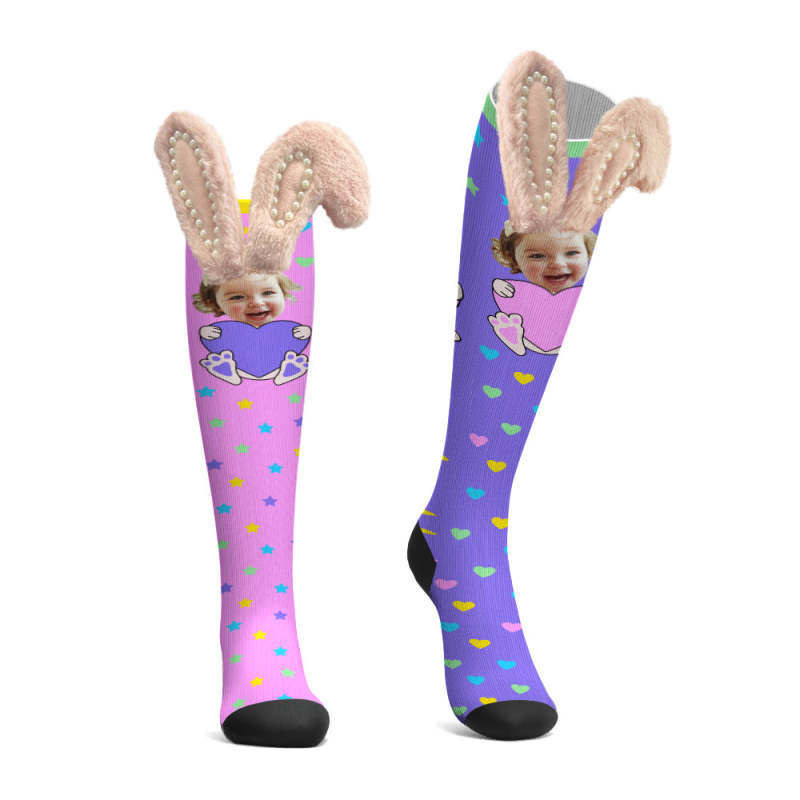 Custom Socks Knee High Face Socks 3D Bunny Ears with Pearls Socks - MyFaceSocksAu Custom Socks Knee High Face Socks 3D Bunny Ears with Pearls Socks - MyFaceSocksAu