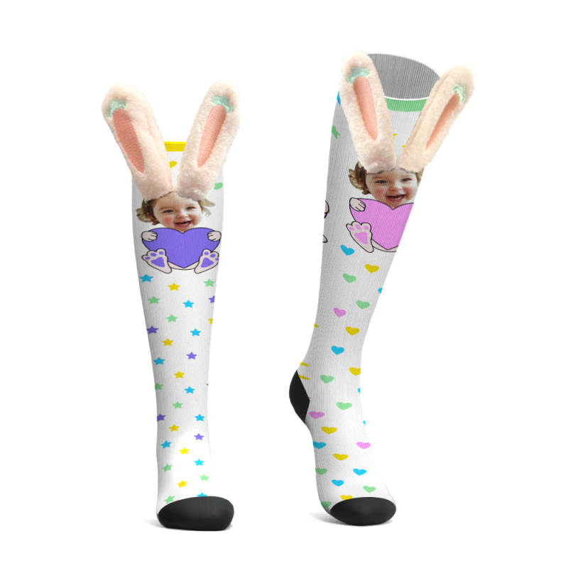 Custom Socks Knee High Face Socks 3D Plush Bunny Ears Socks - MyFaceSocksAu Custom Socks Knee High Face Socks 3D Plush Bunny Ears Socks - MyFaceSocksAu