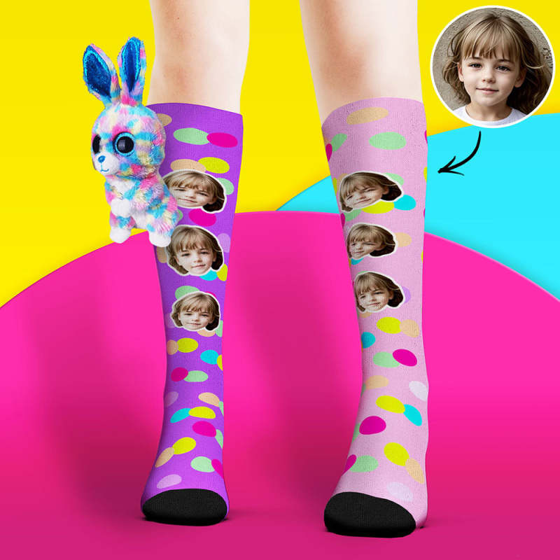 Custom Socks Knee High Face Socks Colorful Polka Dot Rabbit Doll Socks - MyFaceSocksAu Custom Socks Knee High Face Socks Colorful Polka Dot Rabbit Doll Socks - MyFaceSocksAu