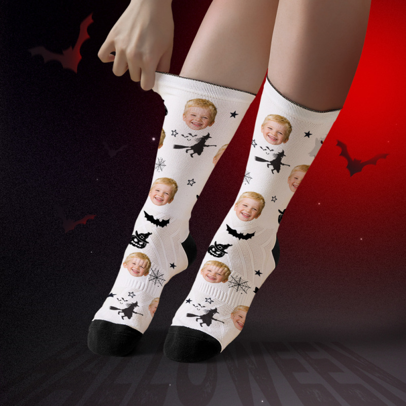 Custom Spooky Socks Personalized Halloween Face Socks for Friends & Family