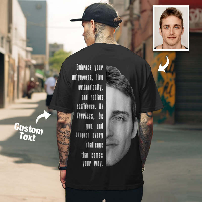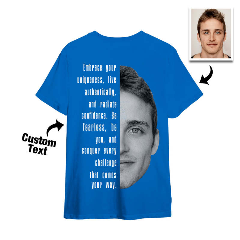 • Features:The shirt features a customizable blend of text and a face, making it a truly special and meaningful gift. Embrace individuality and style with this personalized fashion shirt that goes beyond ordinary. Perfect for expressing love, friendship, or appreciation. Surprise your special someone with a fashion-forward, one-of-a-kind gift that they'll cherish.