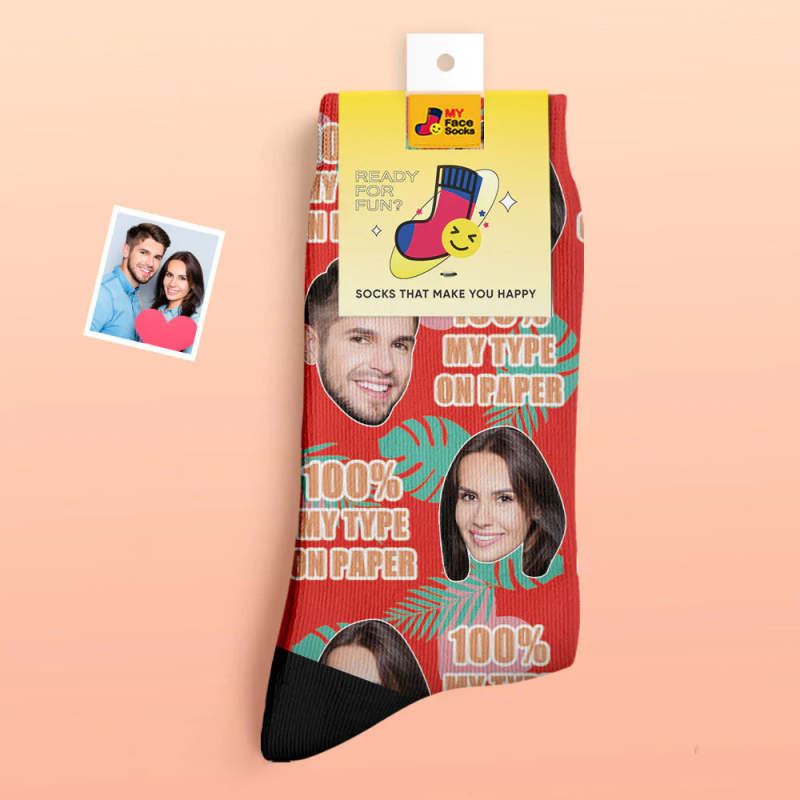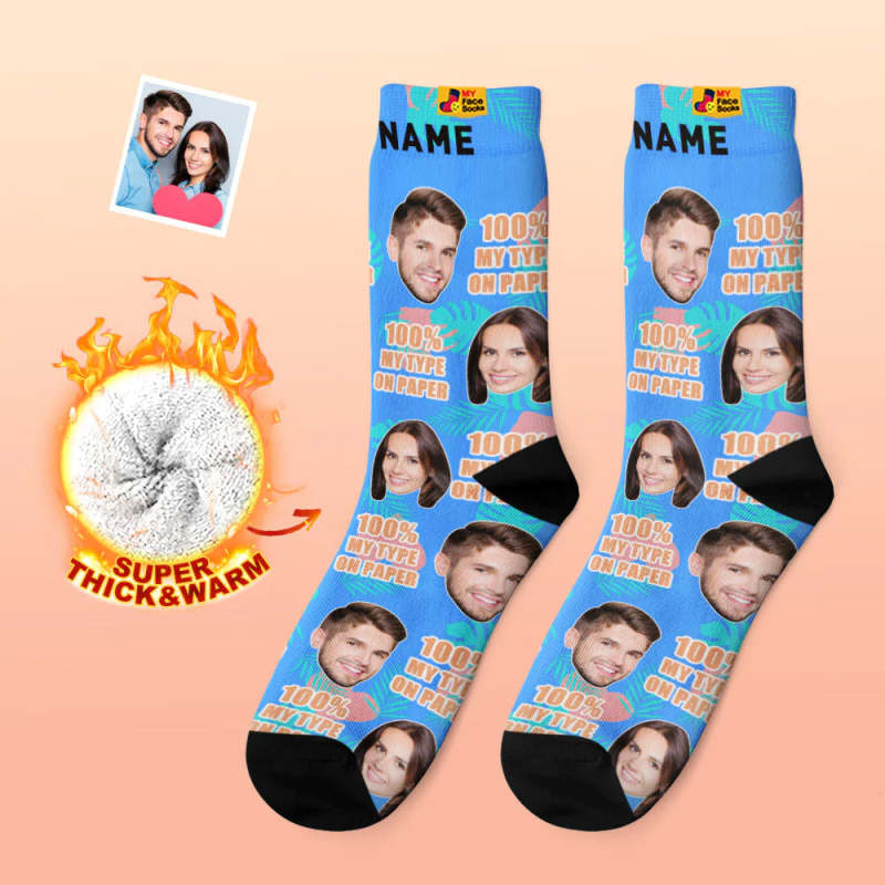 Custom Thick Photo Socks Valentine's Day Gift Warm Socks 100 MY TYPE ON PAPER Face Socks
