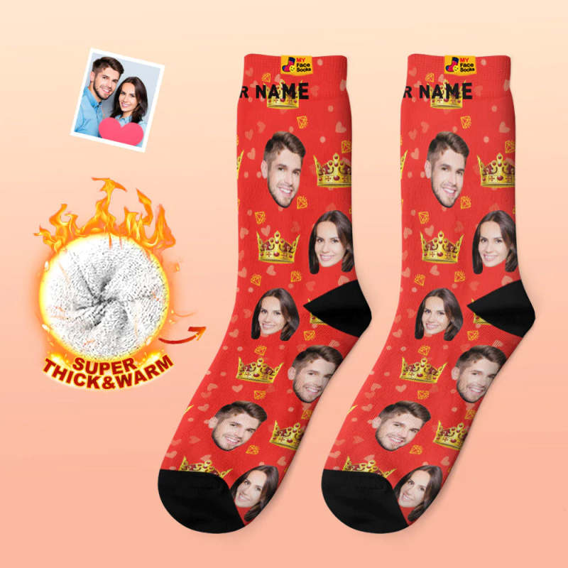 Custom Thick Photo Socks Valentine's Day Gift Warm Socks Queen Face Socks