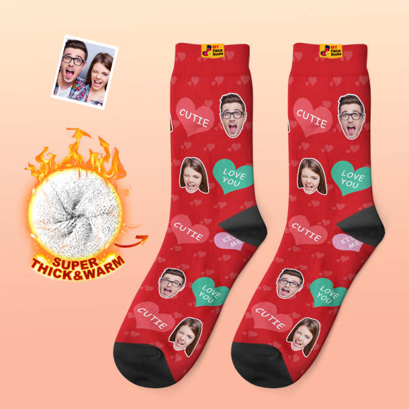 Custom Thick Photo Socks Valentine's Day Gifts Warm Socks Cutie Face Socks