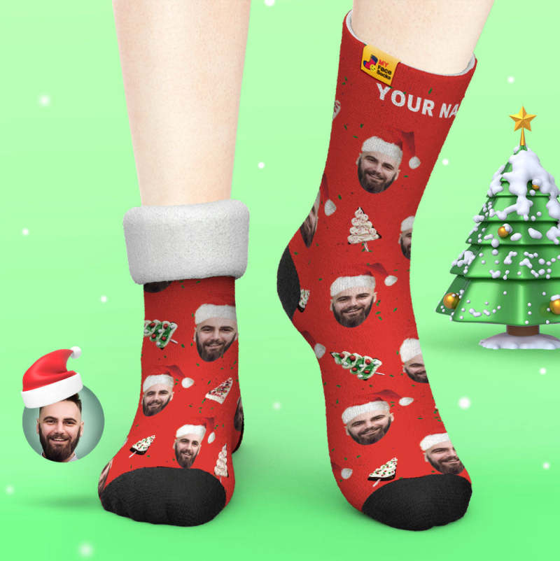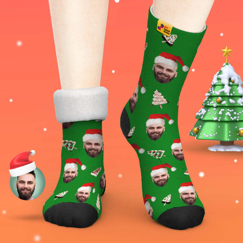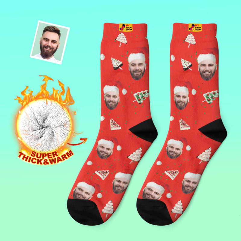 Custom Thick Socks Photo Autumn Winter Warm Socks Christmas Cake Socks Merry Christmas